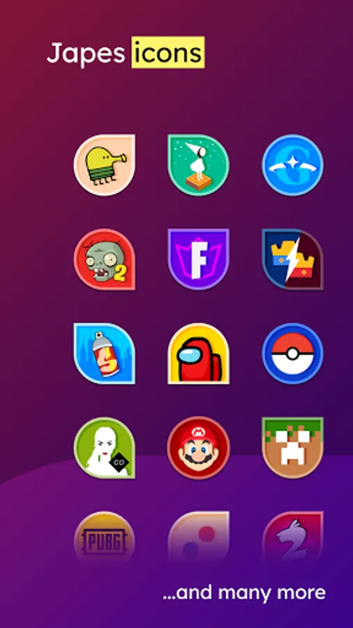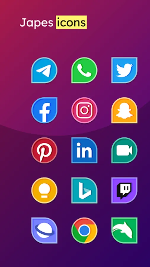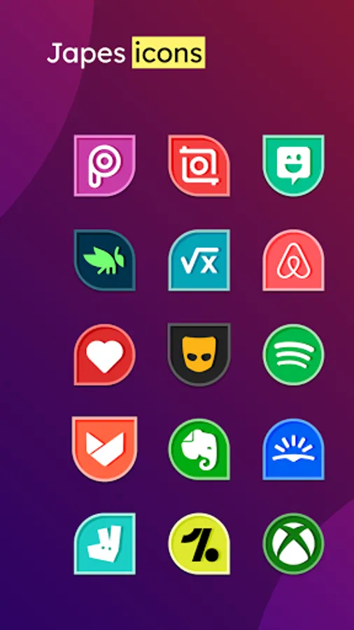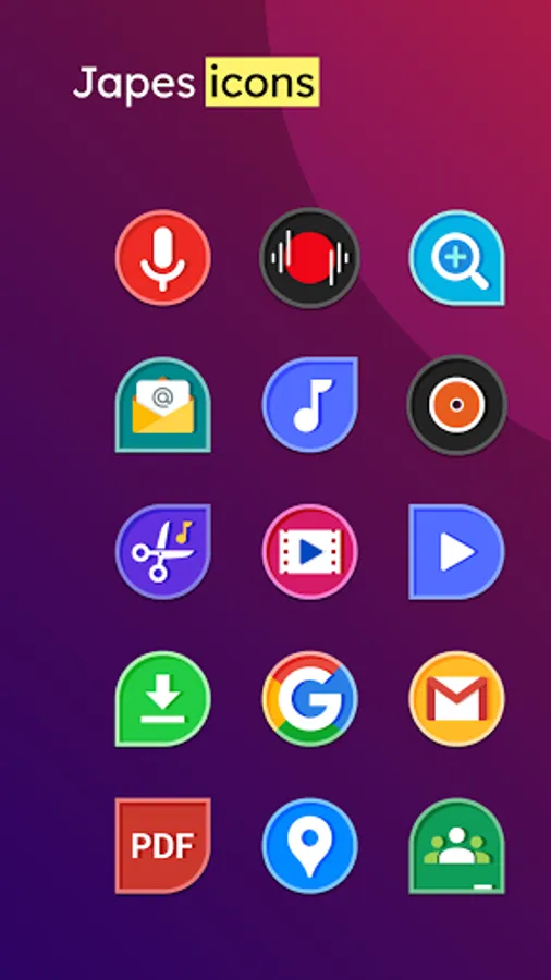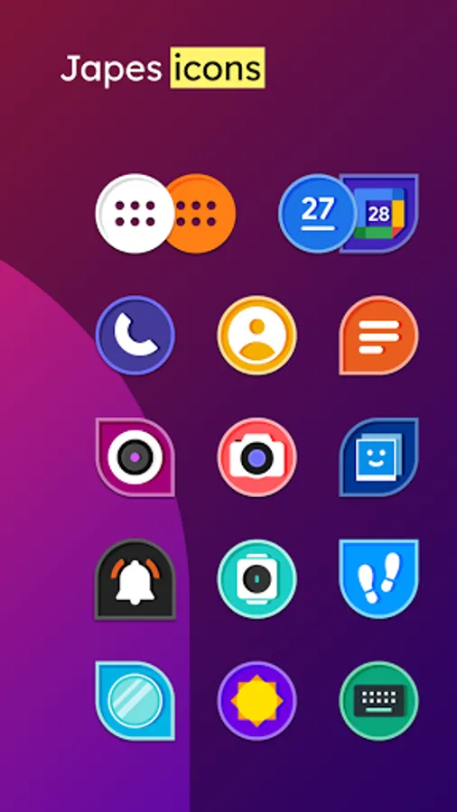 Give your smartphone's home a vibrant look with Japes: a set of colorful HD icons with different shapes for your apps and games!