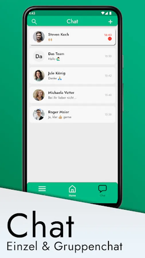 - Exchange information in the integrated chat with individual colleagues or in groups.