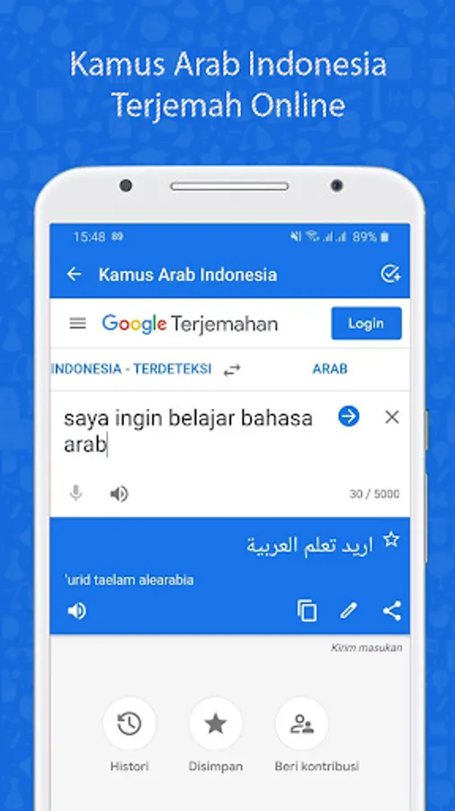 This Indonesian Arabic Dictionary application is Free and Offline does not require an internet connection to use it.