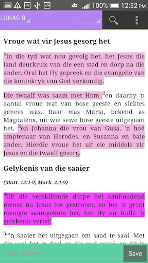 Die Boodskap is a digital study Bible app that helps in Bible study in the palm of your hand. It has a good design to help you read the Bible, navigate, search, highlight verses, bookmark, make notes