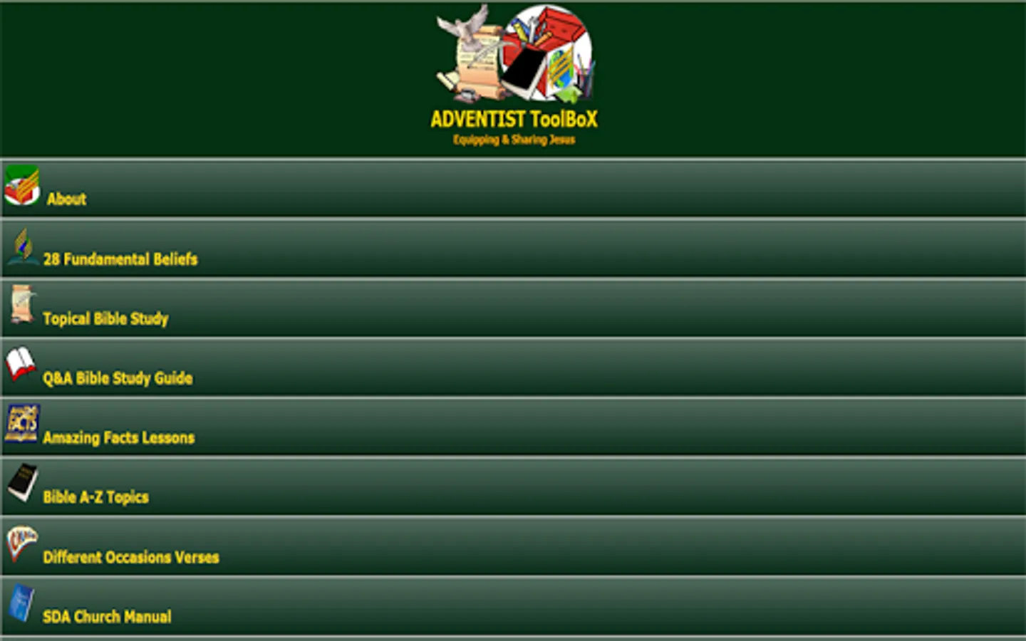 Adventist Toolbox is for every Adventist! Adventist Toolbox does not own or claim any materials being compiled in this app. What is available online we make them offline to help those countries who have poor internet connection. The main purpose is to help equip the Adventist church members in the ministry they are doing. This app is for FREE. To those who cannot afford to donate little amount @Google Play because of financial difficulties. please let us know and tell us about your ministry so we can send you this app for FREE....but I'm sure if you can support our literature evangelists, our Philippine Publishing House, our Adventist Schools, shopping malls, Seven Eleven stores and other business establishments, then you may prayerfully consider supporting the continues development of this app too!!! We ask you to prayerfully consider supporting the continues development of this app as making this available @Google play is not free. Also, of course developing this need some fundings too...So thank you so much for supporting the continuous development of this app. God bless your heart.
