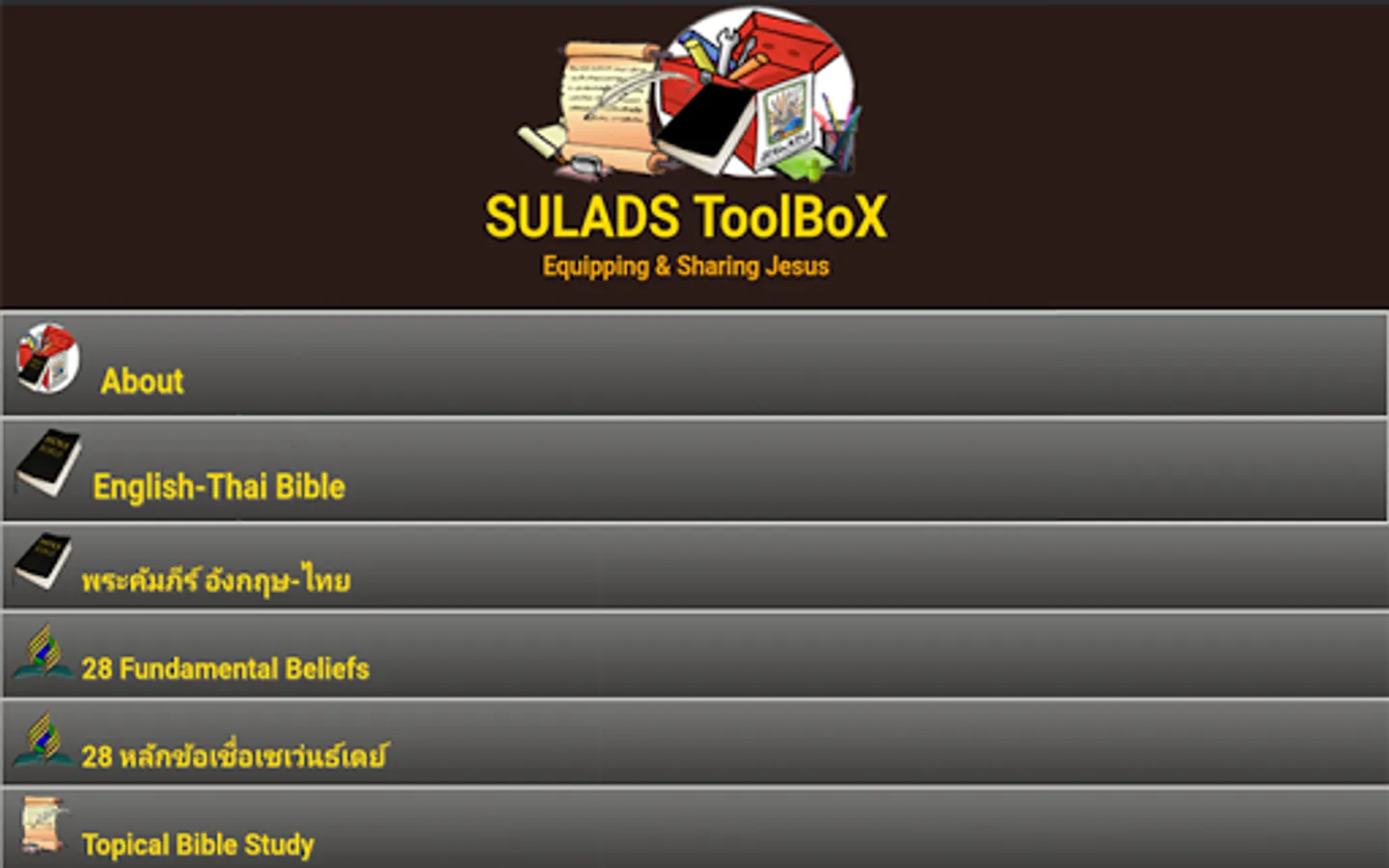 SULADS ToolBoX is designed to provide you resources for inreach and outreach tools..If you are in Thailand and Laos and you love to share Jesus to your Buddhist friends, then SULADS ToolBoX is for you!