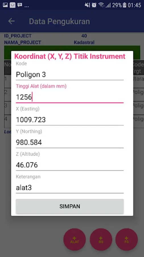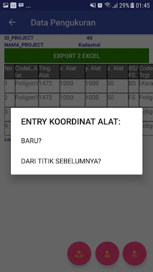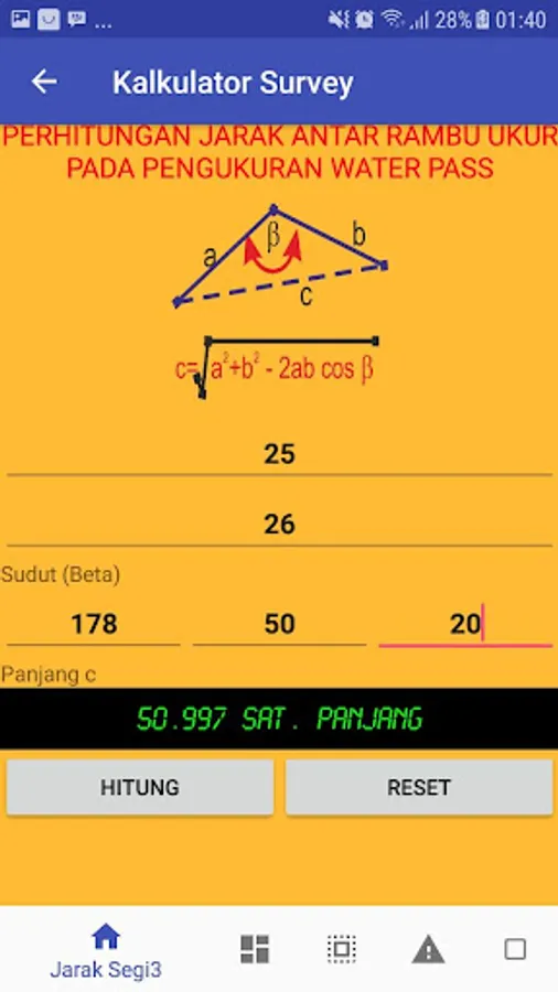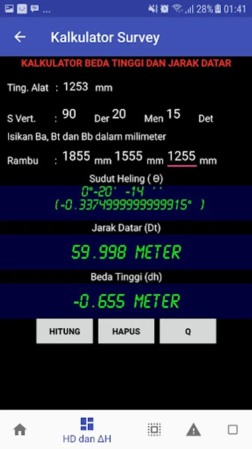 GeomatikaDroid application has features Practice Guidelines for Survey and Mapping 14 meeting, Kalkukator Survey, Nivo, Polygon and Topographic Survey Notes From the theodolite with the results of data such as Total Station can be downloaded to Excel (Unlimited Row).
