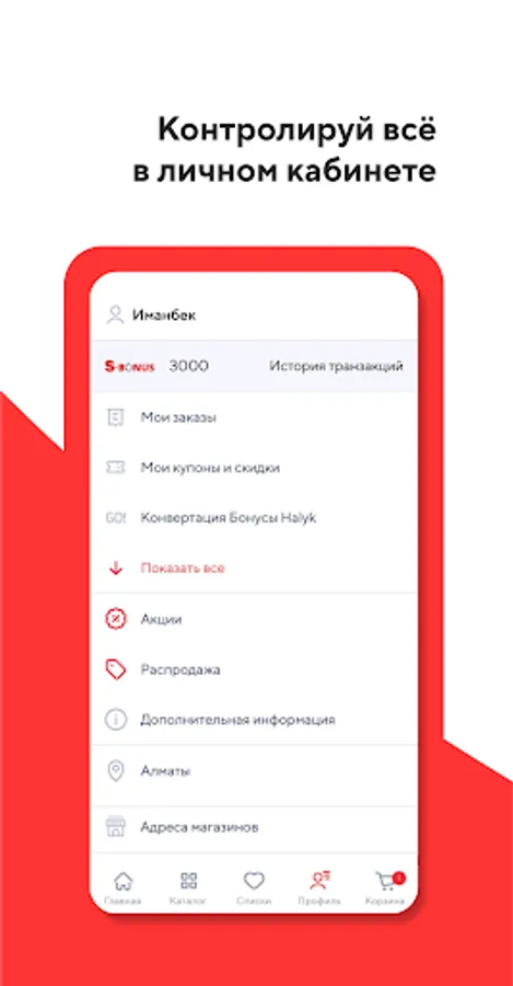 - Bonuses for each purchase (according to the terms of the SBonus loyalty program)