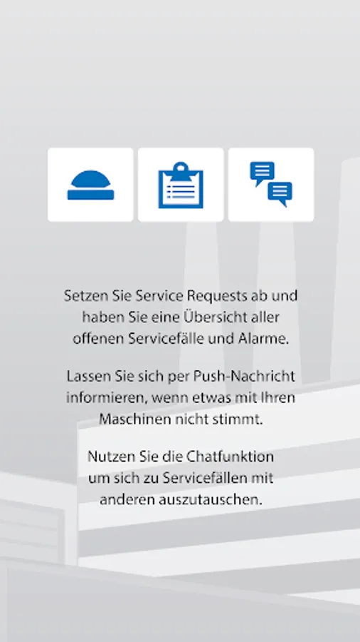 myConnect Plant offers you access to your machine and production data from everywhere via smartphone and shows you all important key figures at one glance. The line overview clearly indicates all machines and conditions. In addition myConnect Plant offers detailed visualizations for selected machines. With myConnect Plant you are timely informed about appearing technical problems. At any time you can release service requests and complete them with a photo attachment.