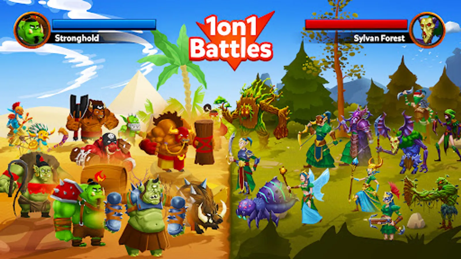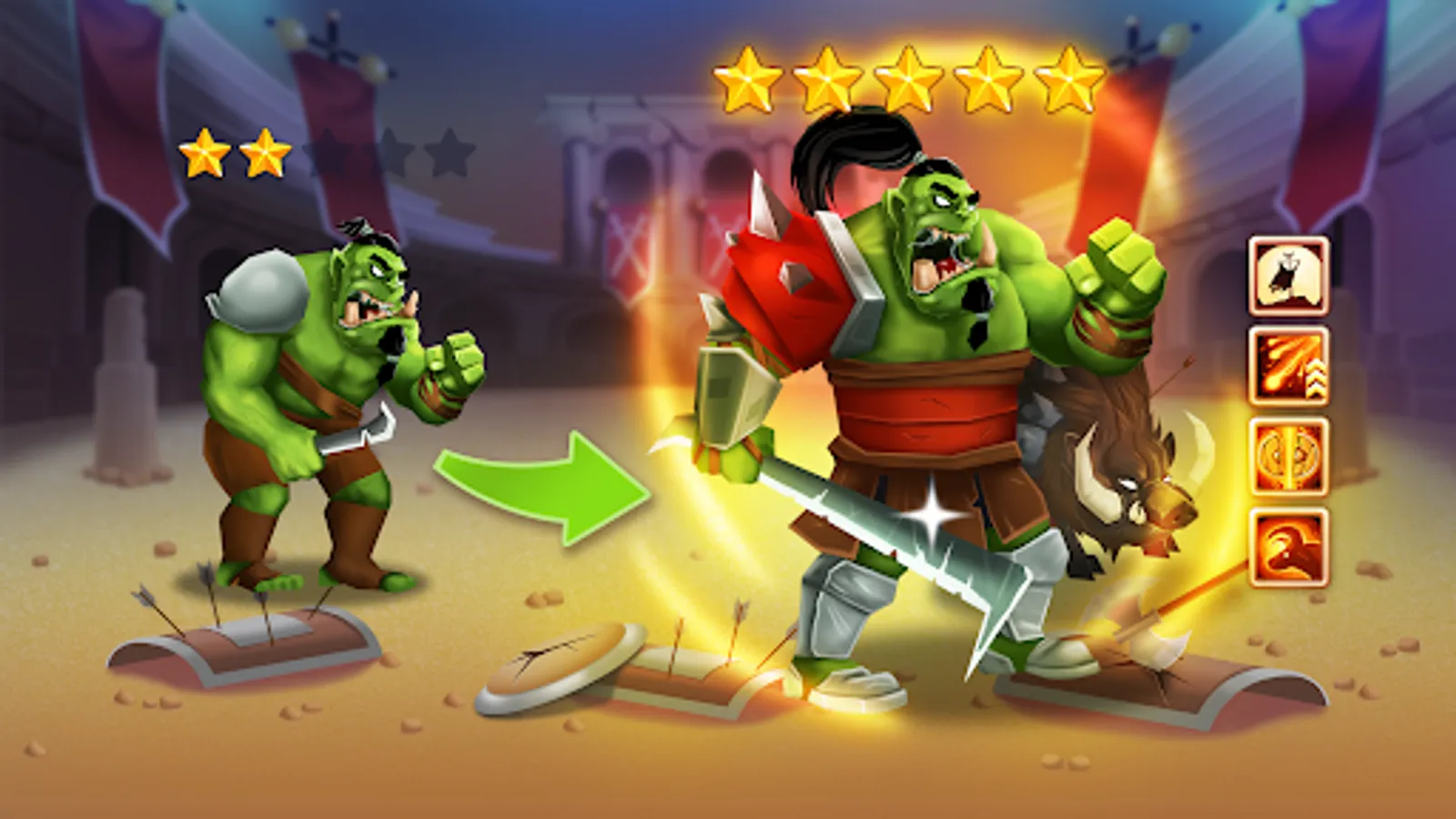 Enjoy one of the funniest and craziest game in which you fight with enemies. Your target is simple - just crush them. Every player can find his favorite monster with amazing graphic. Collect over 100 characters. Each hero has special ability / superpowers and belongs into character category. Orcs are the most powerful. Goblins are the fastest. Knights are the bravest. Wizards could win thanks to their spells. Dwarfs love loot. There are many heroes ready for the epic match - join them to complete the mission. Choose the favorite faction, defend the kingdom and turn your enemies into skeletons and ash.