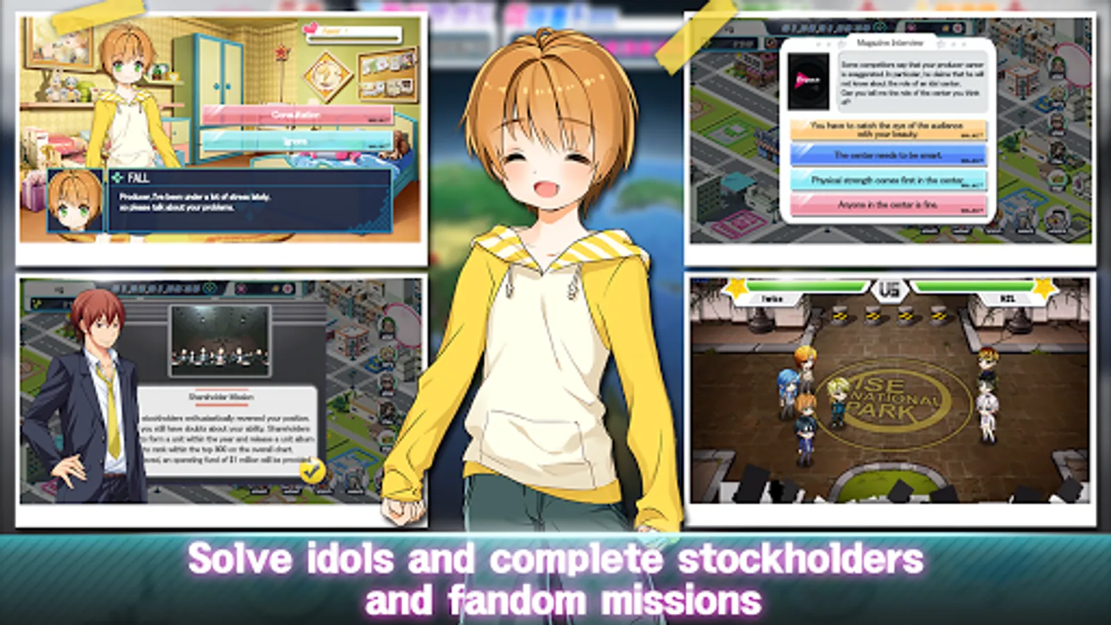 In the game you will be a company CEO and after scouted a few idol and create your own BOY group, you will try to save your company from bankruptcy!