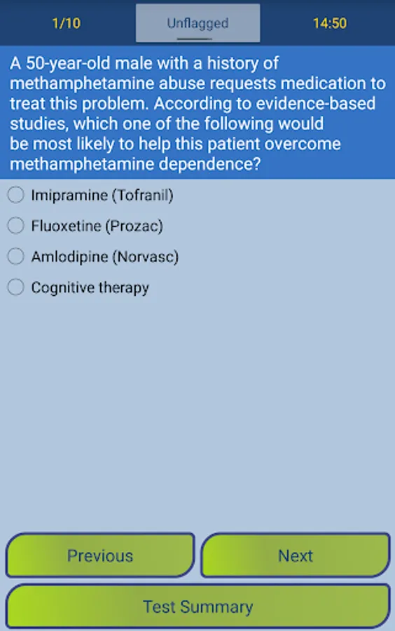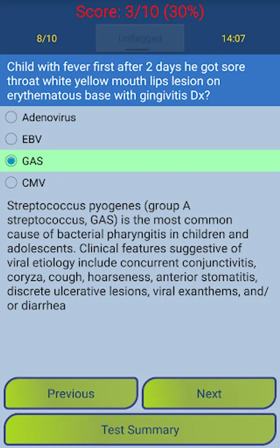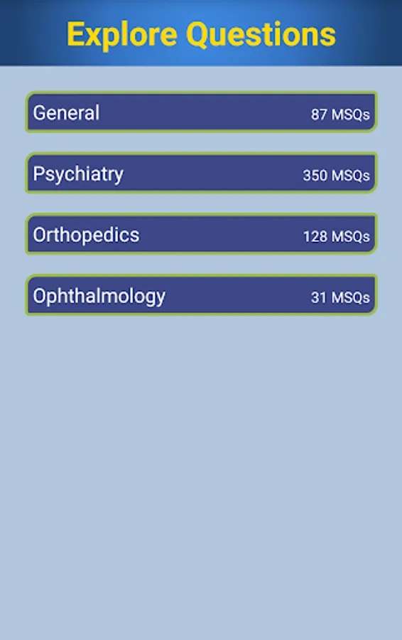 Also, you can go over all questions of a specialty with the ability to see the correct answer and explanation.