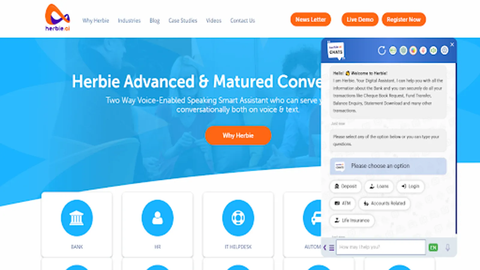 Herbie can be used in a range of industries to supply facts or perform tasks like gathering statistics involving product orders, doing surveys, answering patron inquiries, doing registration and bookings. Due to its flexibility, it can be extensively used in education, healthcare, economic and enterprise industries.