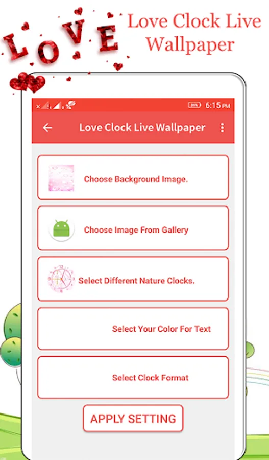 Love clock Live wallpaper contain different types amazing clocks and beautiful backgrounds Flower Clock Live Wallpaper is highly customizable live wallpaper application,
