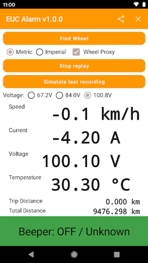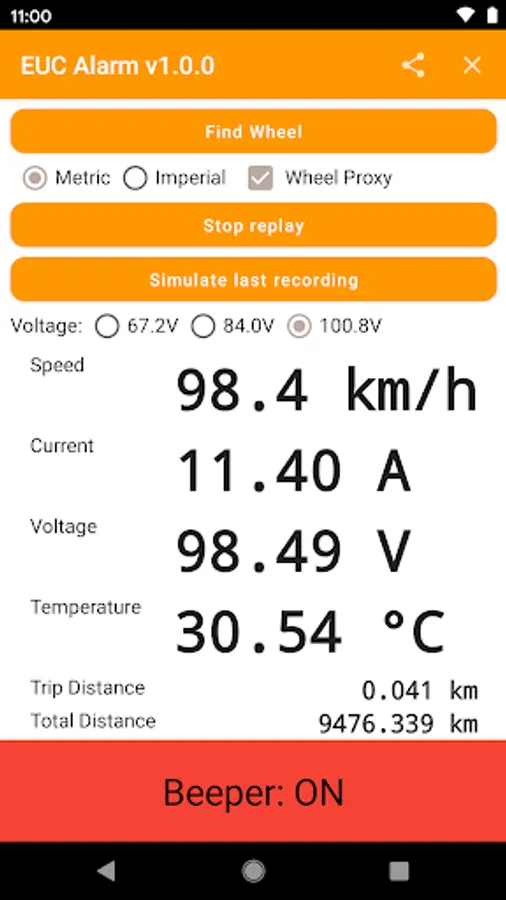 EUC Alarms Tech demo connects to your recent Gotway, Begode or Extreme Bull Electric Unicycle and replicates the wheel's original beeper activity onto your phone.
