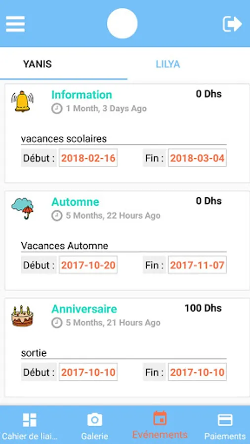 - Access the calendar of the crèche for upcoming events