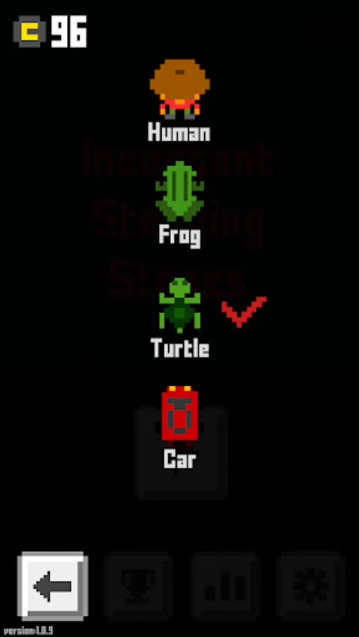 You can acquire the character in accordance with the best record (100 frogs, 500 turtles, 1000 car)