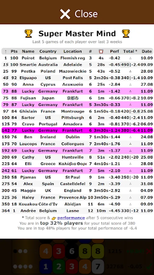 Play Super Master Mind and evaluate your strategy!