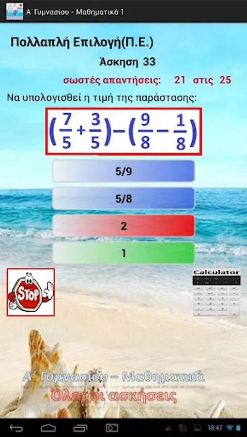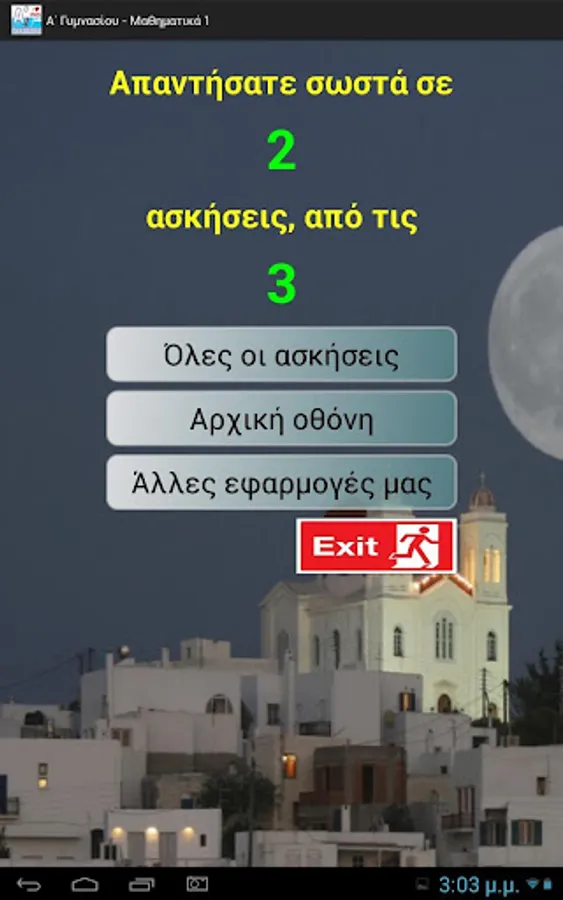 A new application (the only one available) for Mathematics of the First High School. The application contains 398 exercises from Chapters 1 and 2 as they exist in the school book. Repetition - practicing in a pleasant and entertaining way for the students of the First High School.