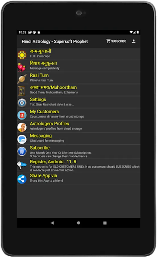 In addition to generating horoscope reports, the app can also be used to calculate marriage compatibility, auspicious times for events such as weddings and housewarmings, and other astrological calculations. The app is available in English, Malayalam, Hindi, Tamil, Kannada, and Telugu.