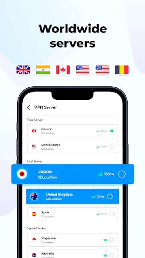 * 100+ global VPN servers network (USA, UK, Japan, Singapore, Germany, Australia, France, Netherlands, Canada, India, etc). You can change your IP to all these countries.