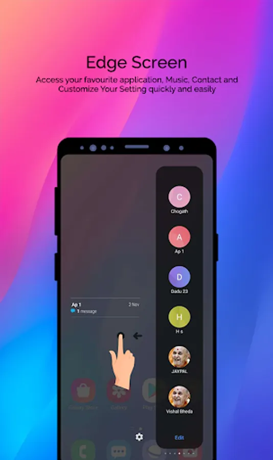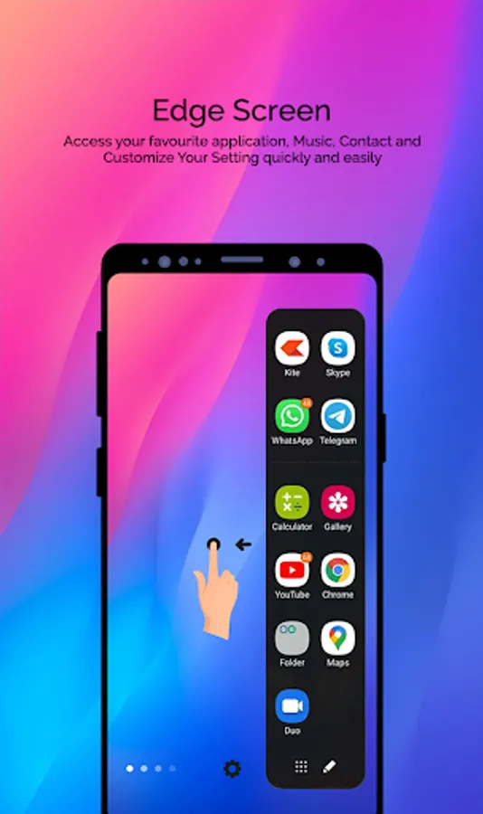 Edge Screen very cool on your phone,Now, It’s available for all Samsung phone and all Android devices!!!Help you quick launch favorite app, quick call dialer and quick messaging everywhere at every time.100+ Wallpaers and Themes Simple, flat UI design, refreshing.