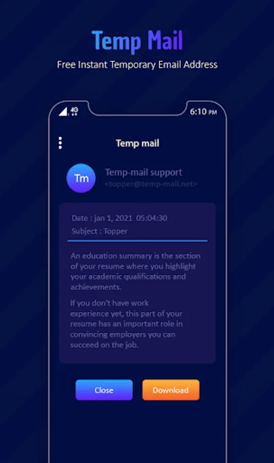 Temp Mail app, you can instantly create multiple disposable email addresses and receive emails right away. You can forget about uncovering your real email to everyone.