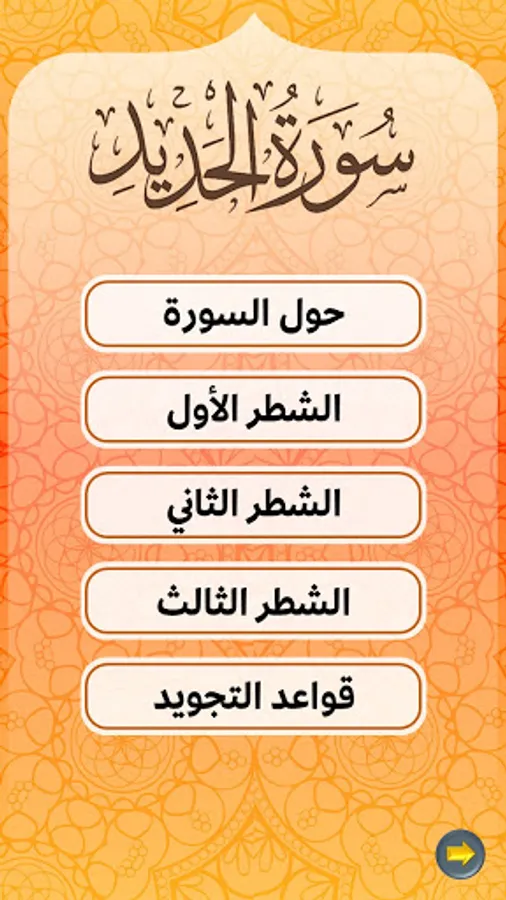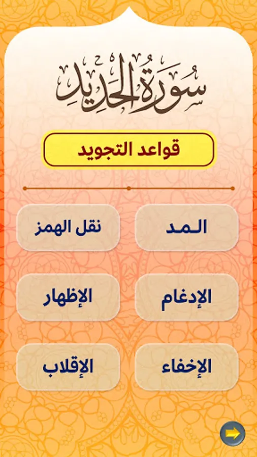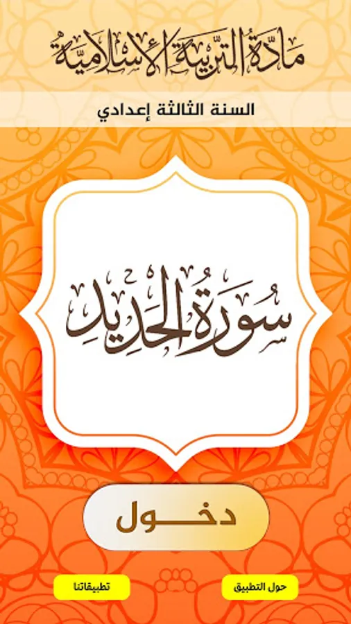 An educational application that deals with Surat Al-Hadid for the third year of middle school, by introducing it and displaying the contents, lessons learned and explanations of words, in addition to explaining the Tajweed rules and providing examples of the surah in a simple and easy way, and in an attractive format.