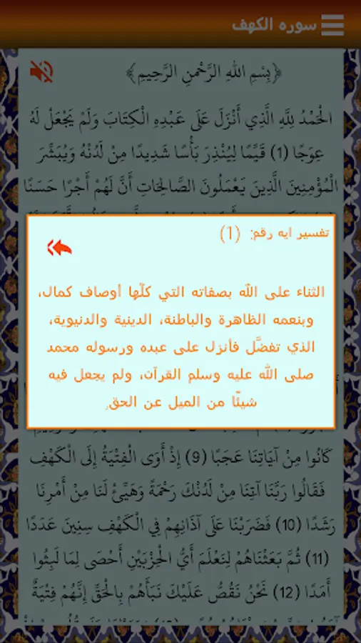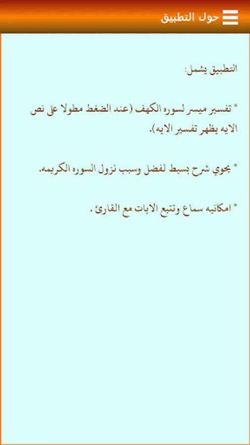 * Easy interpretation of Surat Al-Kahf (when you press long on the text of the verse, a window appears with the interpretation of the verse).
