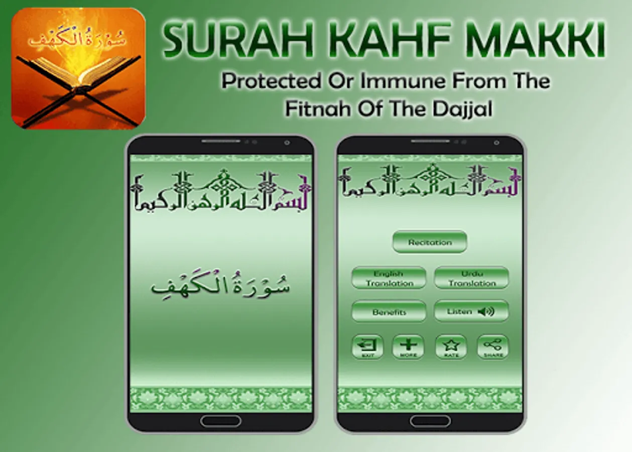 1. Abu Darda' ~ may Allah be pleased with him ~ related that the Holy Prophet ~ ~ said, " One who memorized the first ten verses of Suratul Kahf will be secure against the Dajjal (Anti-Christ) . Another version says: "One who commits to his memory the last 10 verses of this surah will remain immune from the Dajjal. [Muslim]