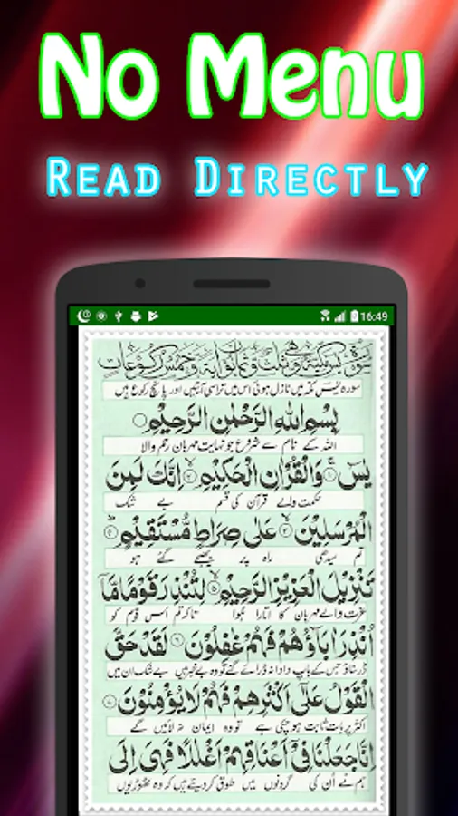 Install this offline Surah Yaseen with Urdu Translation if you just want to open and read the Arabic Text without any interruptions. Also included is Urdu Meaning (Tarjuma).