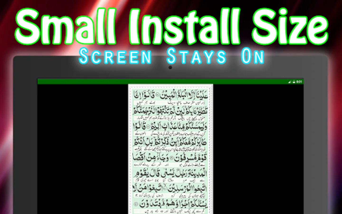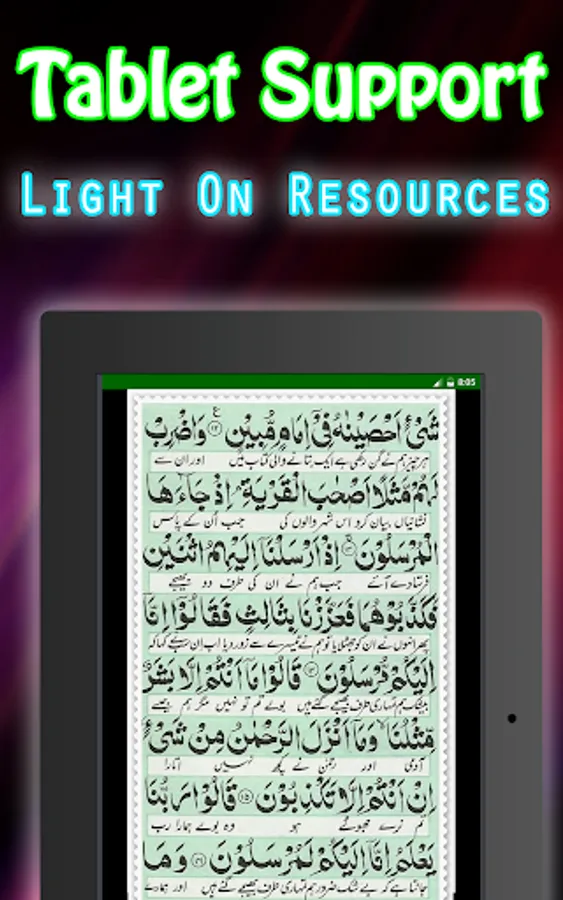 A simple Surah Yasin with no non-sense menus. Just open the app and read the Surah Ya Sin from Holy Quran Shareef. A Surah Yaseen Shareef reading app that is lightweight and takes very less space and uses practically no resources while reading.