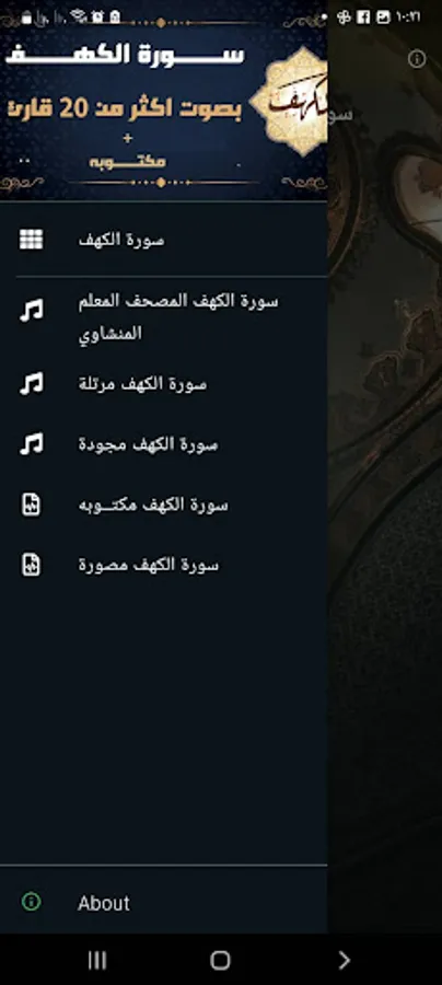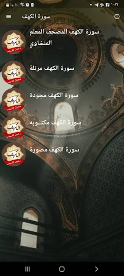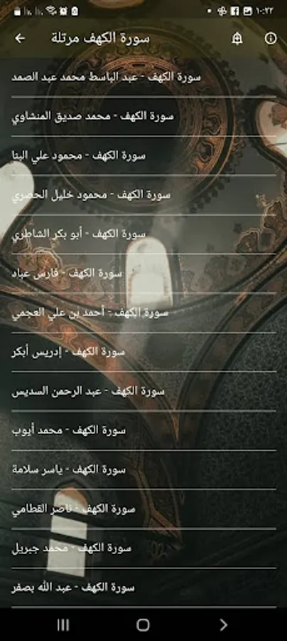Surat Al-Kahf without the Internet, we have collected for you in this application a large number of voices and readers of Surat Al-Kahf, and now we will explain to you the sections included in the application: