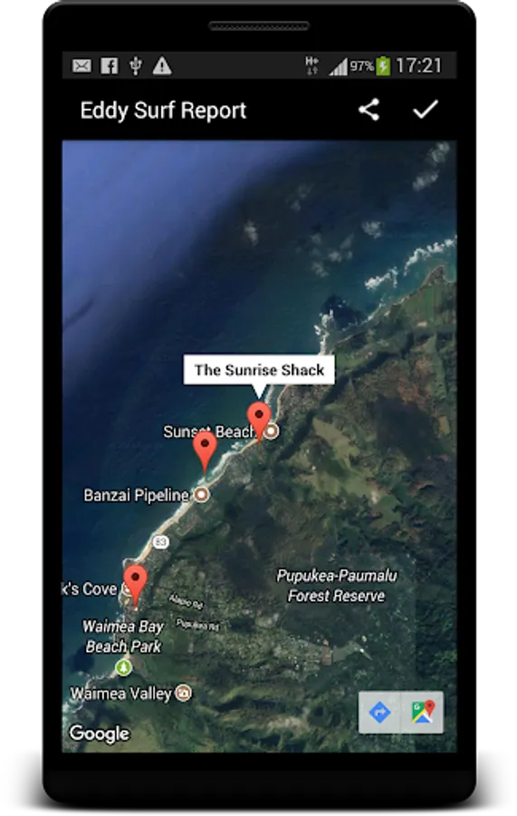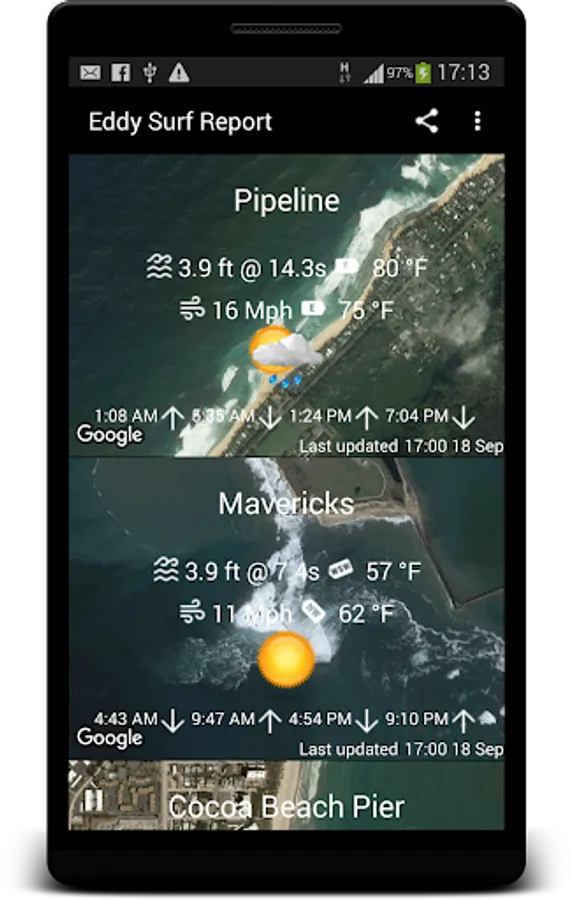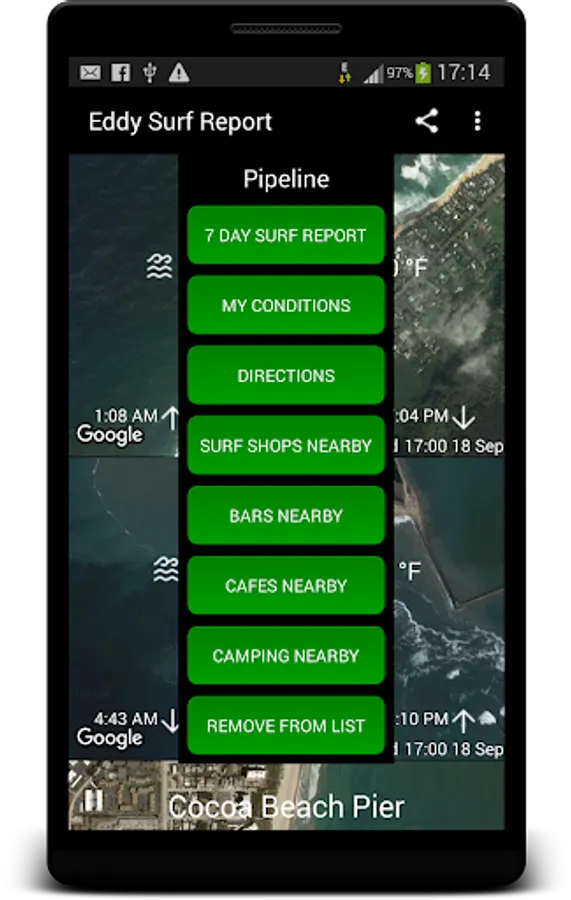 Eddy Surf Report has an in-app purchase which gives you access to the Pro Version. The Pro Version has no advertising and allows you to add more than seven favorite locations to your personalized surf report. The Pro Version costs $0.99 per month and payment will be charged to your Google Play Store Account at confirmation of purchase.