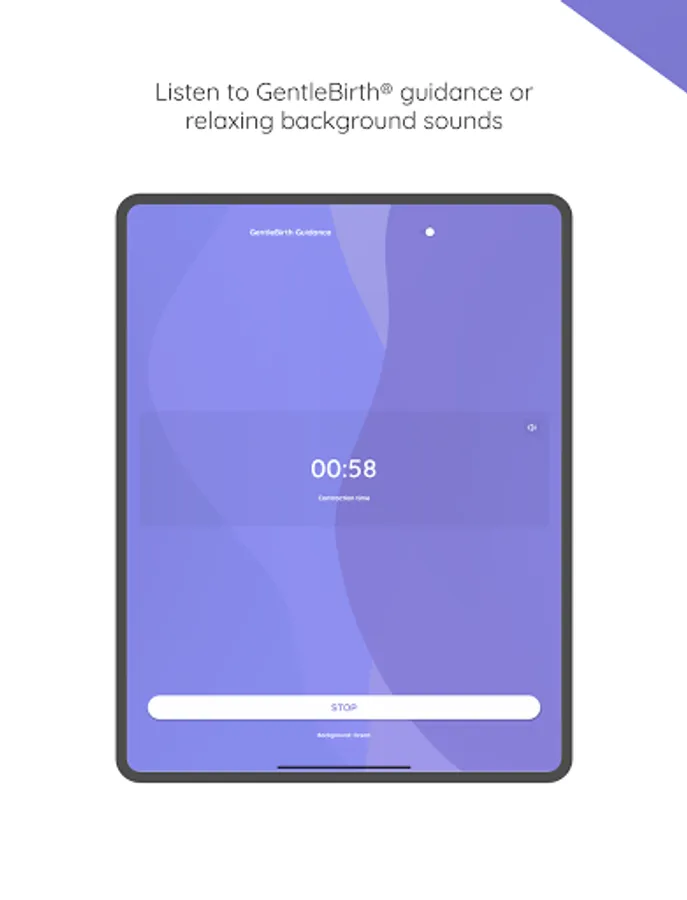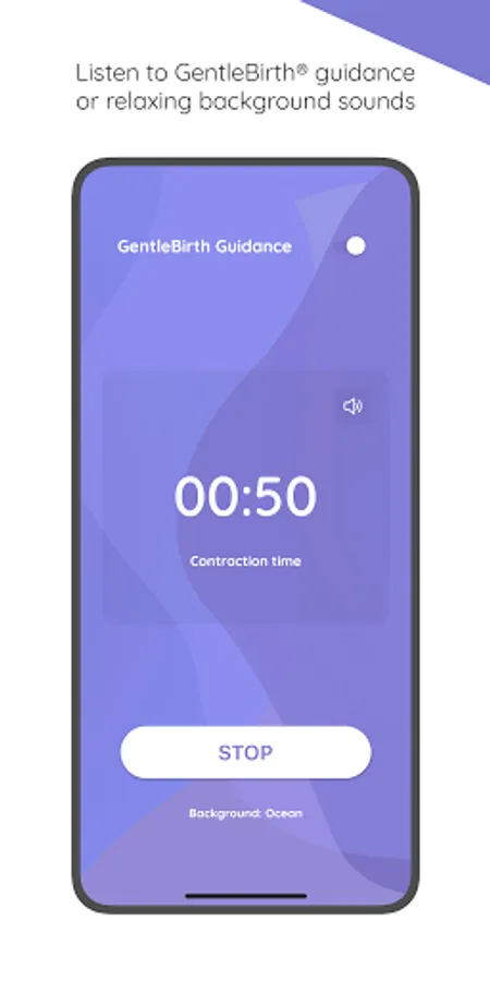 Separate background sounds allow you to play sounds in the background of the GentleBirth Guidance, background sounds only, or no audio at all. All easily controlled from one screen.