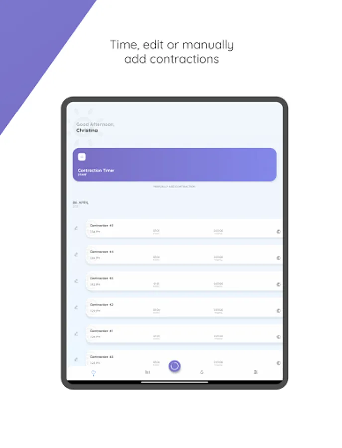 Track contractions in real time, edit contractions previously recorded, manually add contractions or delete when necessary.