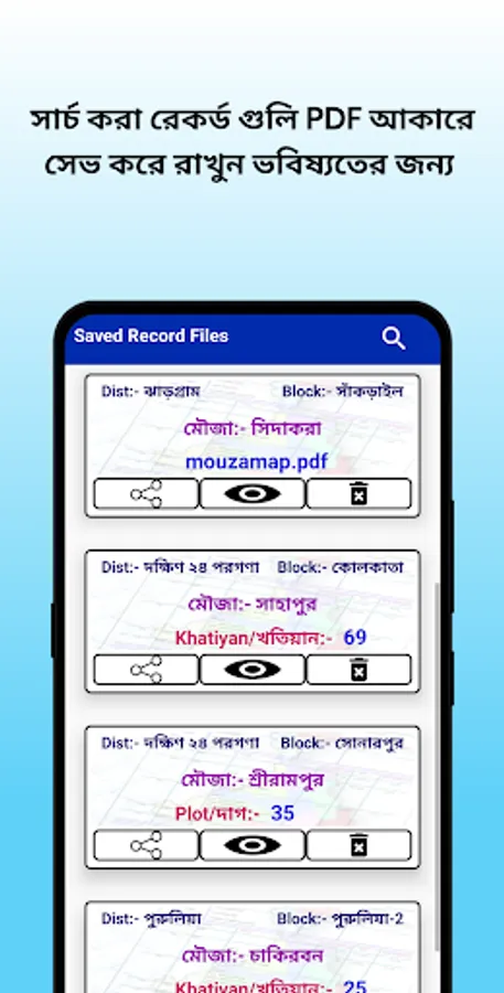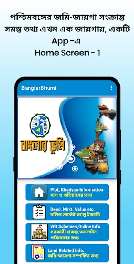 Banglar bhumi is a land record information based app, where you can find the owner of a land and property. This is a very useful and important app for stay aware. You don't need to depend on others persons to verify a land ownership of a property. it gives you a better app performance for find land record, which is called JOMIR TOTHYA. With the help of Khatiyan and Dag no. you can easily find the Land Record information. Also with this banglarbhumi apps you can find the plot information. Banglarbhumi is a easy way to find the west bengal land records with dag,khatiyan, plot details and many other important things.