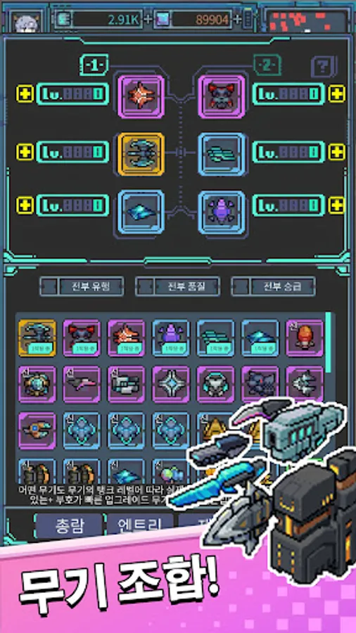 You can have more fun than simply taking down enemies with your weapons. Enjoy colorful roguelike battles with strategic weapon combinations, and enjoy the joy of growth on infinite action stages. 🤗🐱🏍In addition, the card draw system adds to the fun of commando games by acquiring new weapons and equipment.
