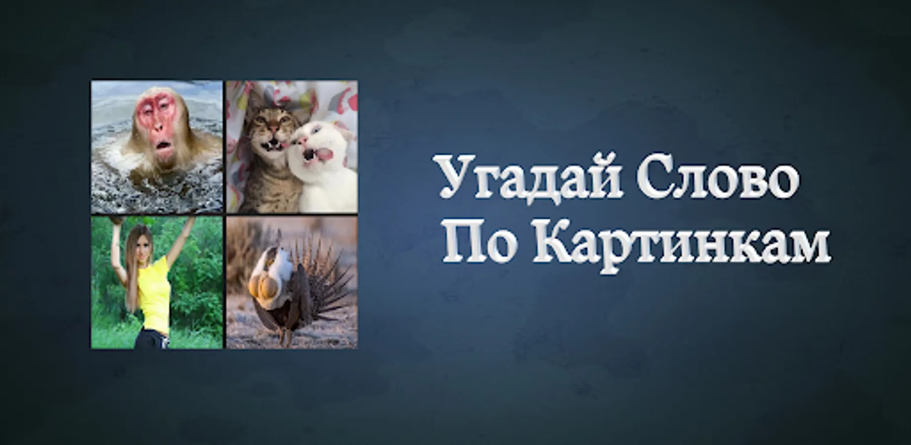 Тренируйте свой мозг и проверьте себя с помощью игры Угадай слово, захватывающей игры в слова и головоломки с фото для вашего android-устройства, в которой есть десятки уровней для проверки ваших знаний. Включите свое воображение и найдите скрытое в 4-х фото слово! У вас получится угадать, что на фото?