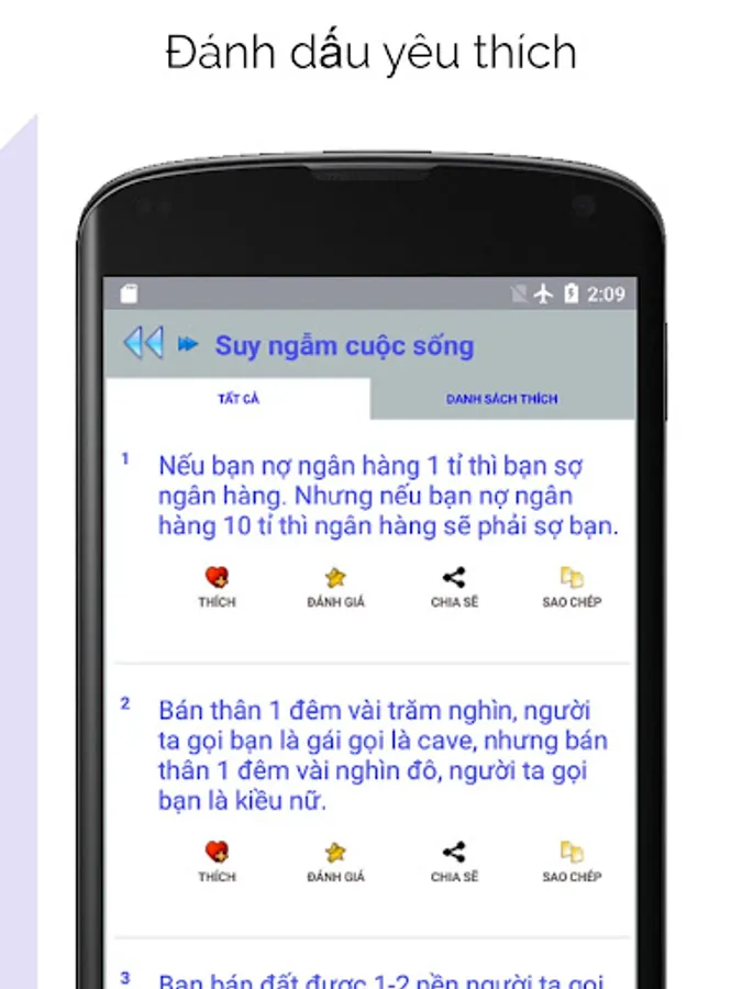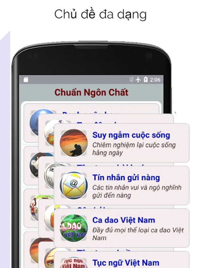 The application with tens of thousands of sayings, mood status, quotes about quotes, love, friendship, will help you choose easily to match your emotional mood, updated daily or periodically. . Intuitive, simple and easy flash card interface.
