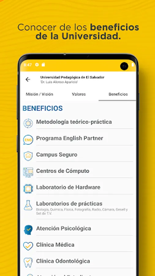 The MI UPED application allows the general public to meet the Pedagogical University of El Salvador “Dr. Luis Alonso Aparicio ”through the news of the university event, its institutional approach, its values, benefits, careers and enrollment processes.