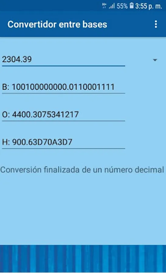 This application helps convert numbers between the most common numerical bases: binary, octal, decimal and hexadecimal.