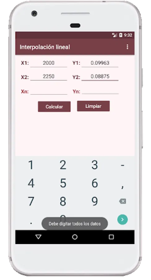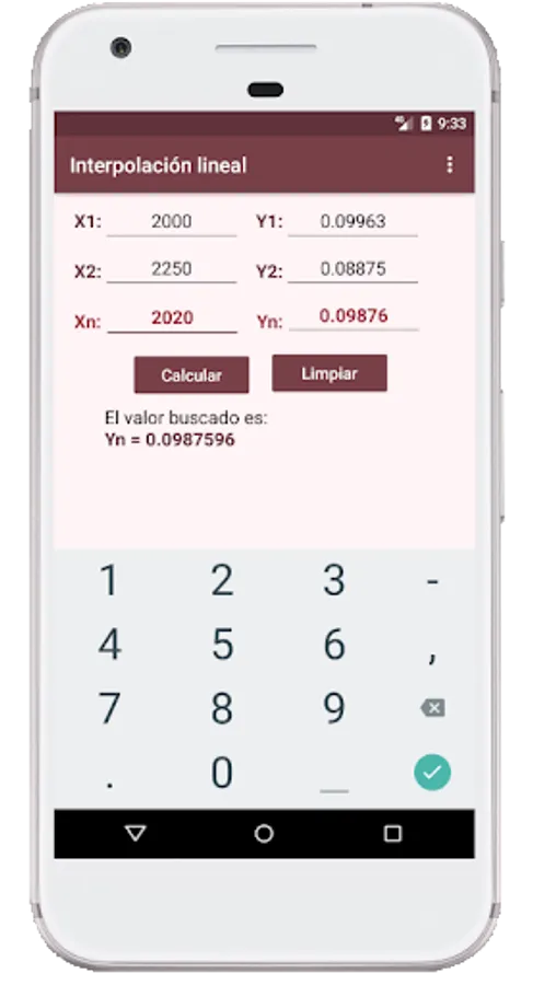 This application makes use of linear interpolation to calculate values that are not found in a data table.