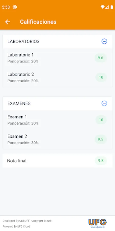 - Qualifications: You can check the qualifications obtained in the evaluations of the subjects enrolled in the current cycle.
