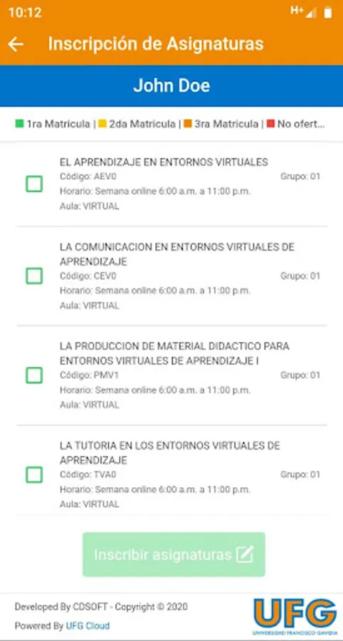 - Subjects and Classrooms: You can check the subjects registered for your current cycle, as well as the location of the classroom where it is taught.