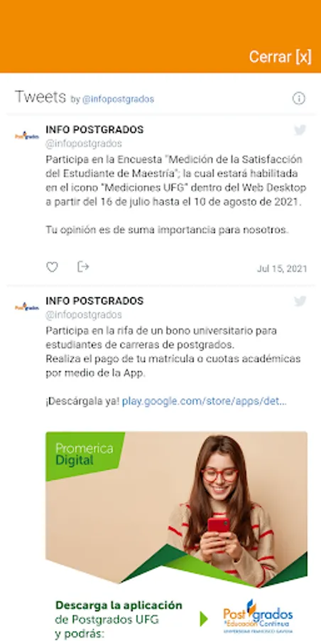 - News: It allows to have first-hand information about the activities or events that take place in Postgraduate UFG.