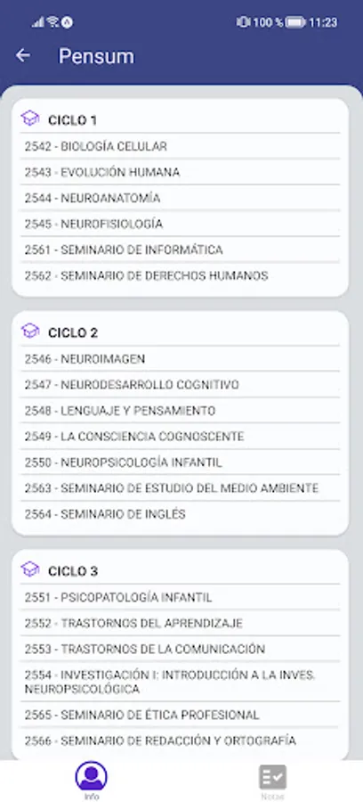 In USOLink Postgraduate, you will find, in the Information section: the student profile, news, academic calendar, class schedule and study plan; and in the Notes section you can see the current cycle, as well as the history of notes.