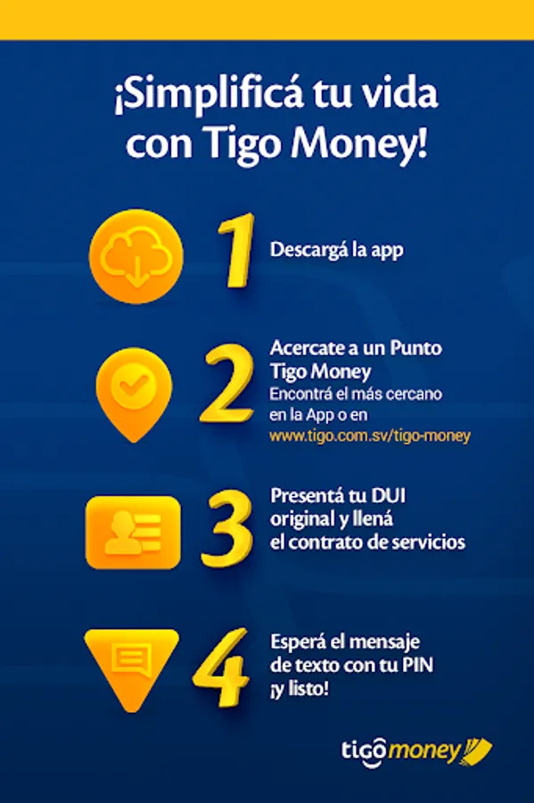 What is Tigo Money El Salvador? Tigo Money is a mobile wallet that allows you to send money, pay in stores, top up, pay bills and utilities, receive remittances through services such as Western Union and MoneyGram, as well as buy Tigo packages and top up your balance. With the Tigo Money app you can count on our allies and the largest network of agents and Tigo Money points throughout the country.