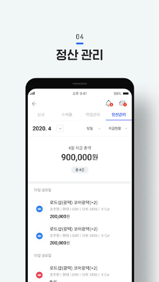Easy to use from work process check to work photo registration.