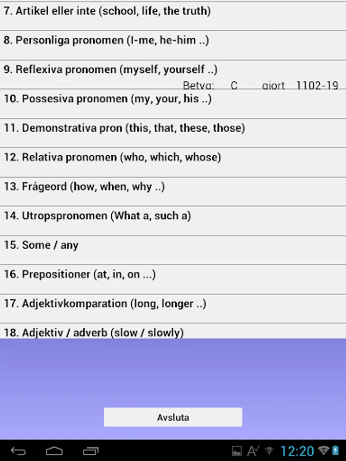 It thus has 45 exercises with more than 2500 exercise sentences.