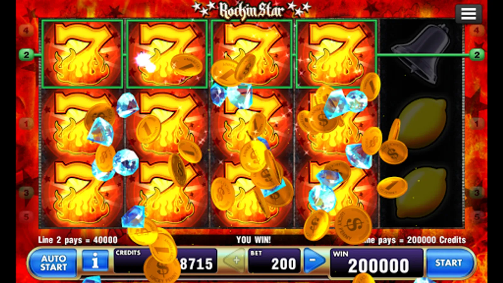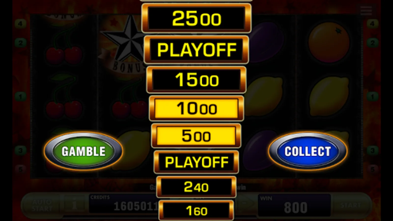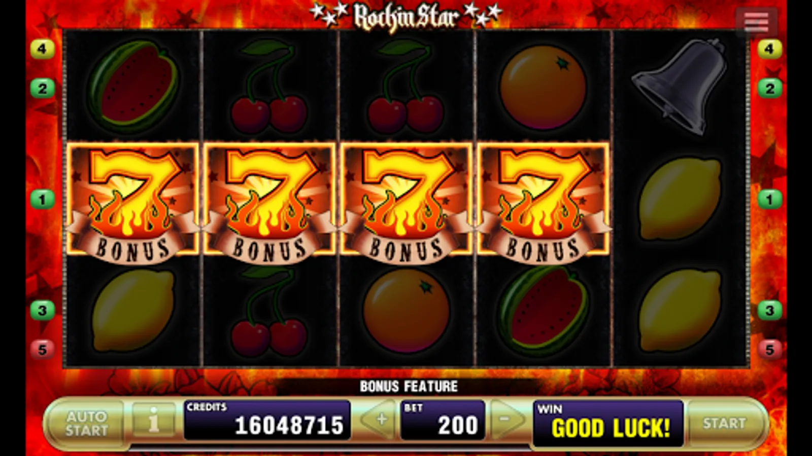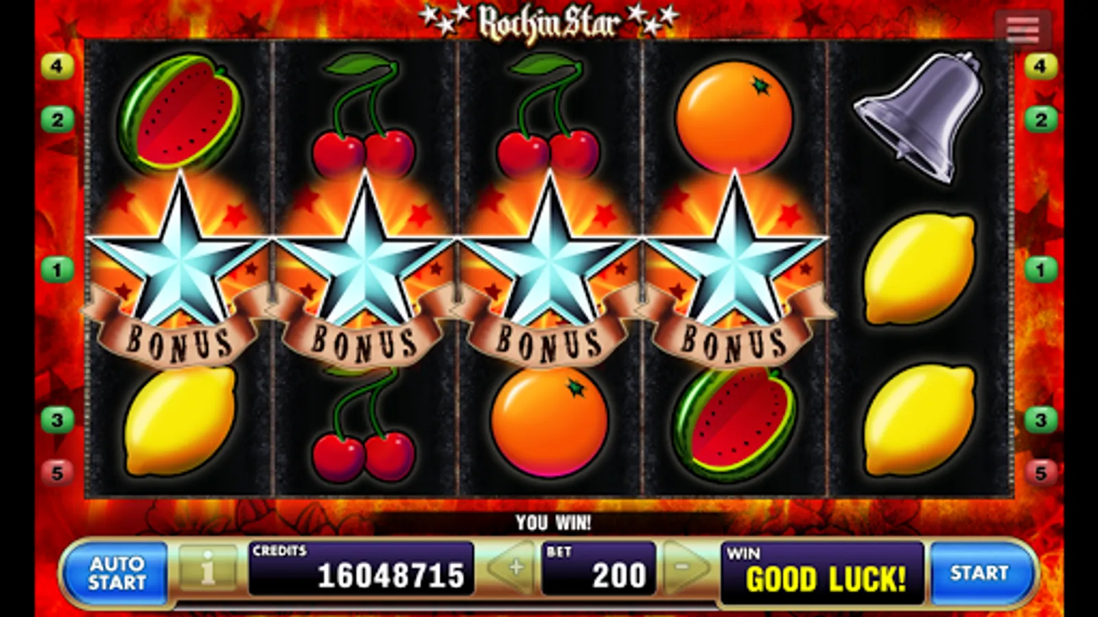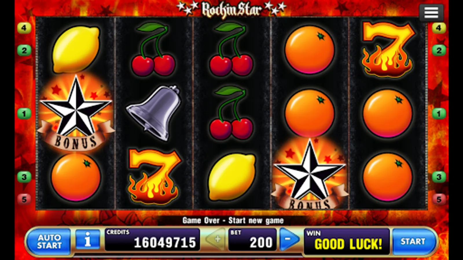 3 STARS on any active payline trigger the STAR BONUS: a symbol is choosen that replace all symbols of the respective reels. The lucky symbol can expand up to fullscreen.
