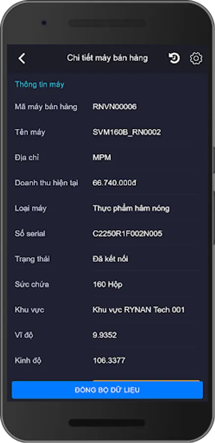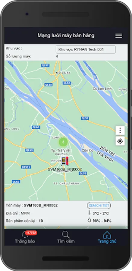 Ứng dụng quản lý, cấu hình, cảnh báo nhiệt độ, độ ẩm máy bán hàng tự động.