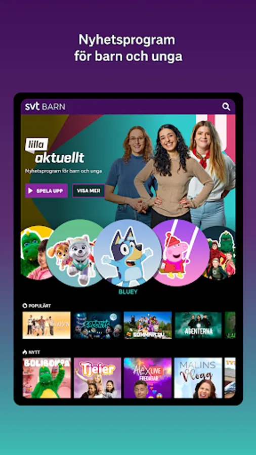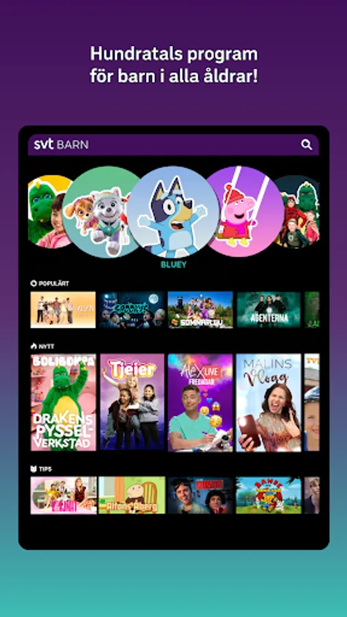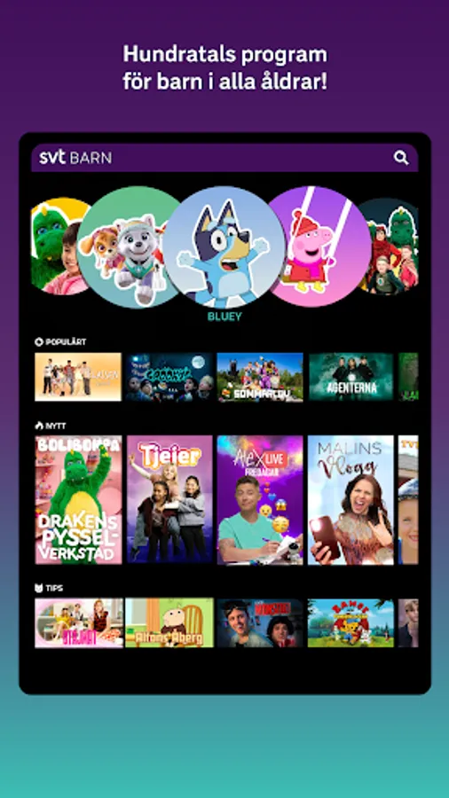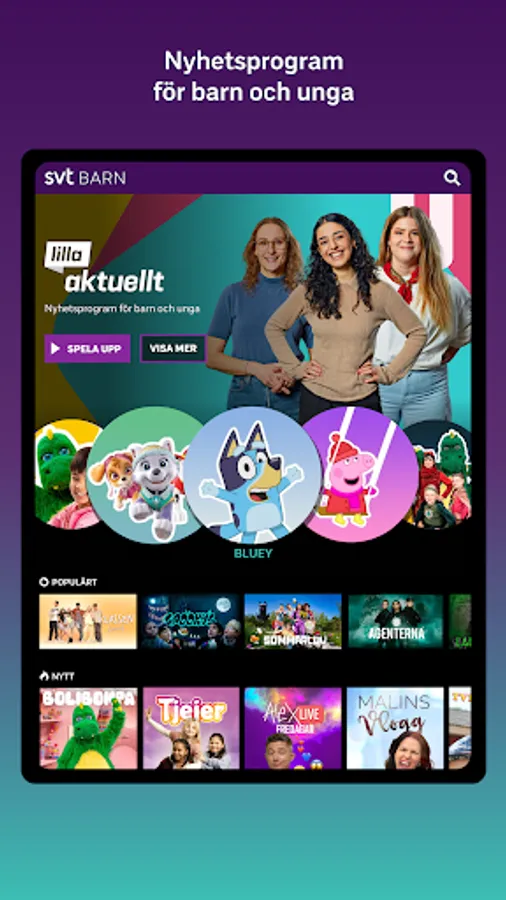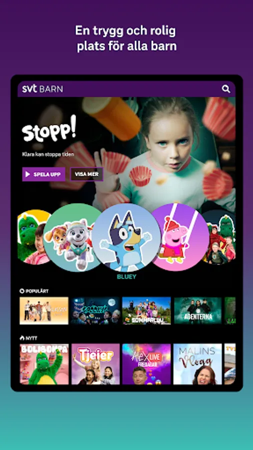 With SVT Children's streaming service, you can watch all of SVT's children's programs when and where it suits you best - hundreds of hours of fun, exciting and developing programs for children of all ages.