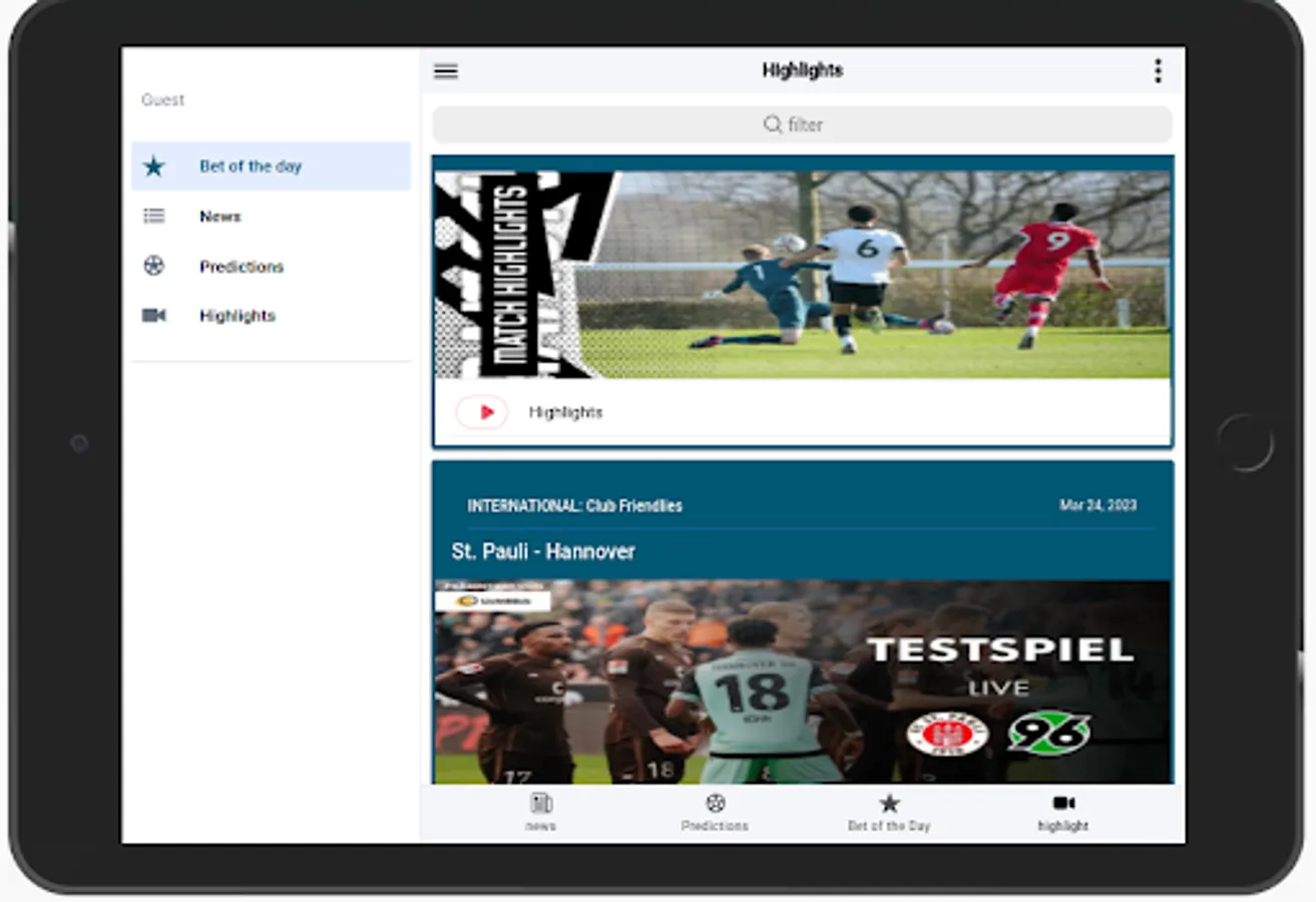 Soccer Box offers you endless information ranging from news, AI predictions, bet of the day, live stream, and football highlights. It contains detailed statistics about giving predictions giving you more options to select based on statistics.